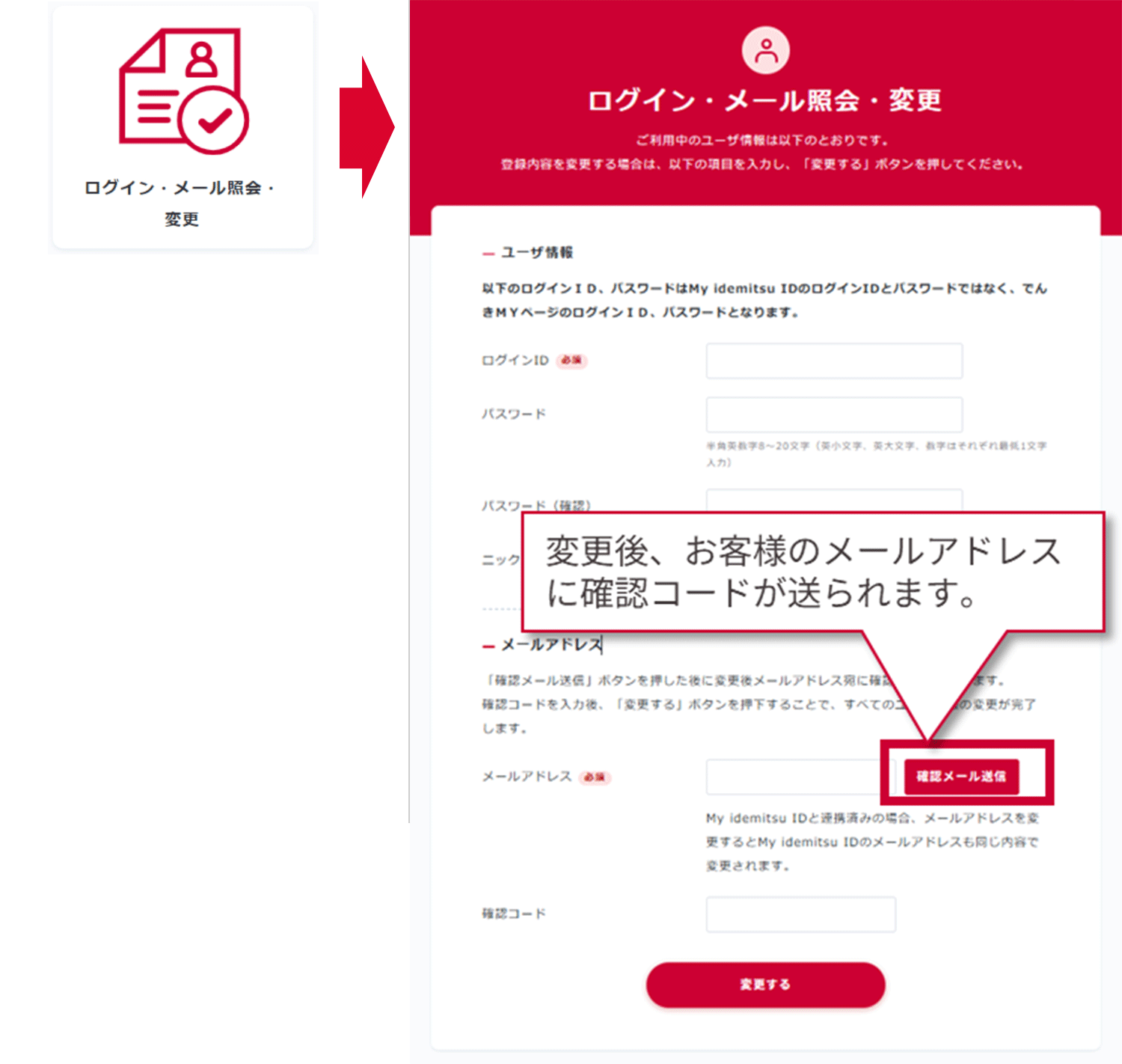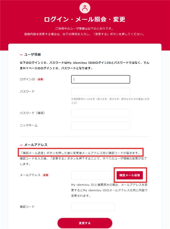※My idemitsu IDと連携済みメールアドレスを変更した場合は、My idemitsu IDのメールアドレスにも変更内容が反映されます。