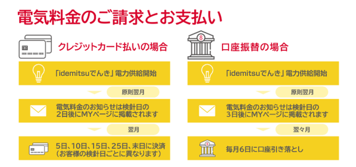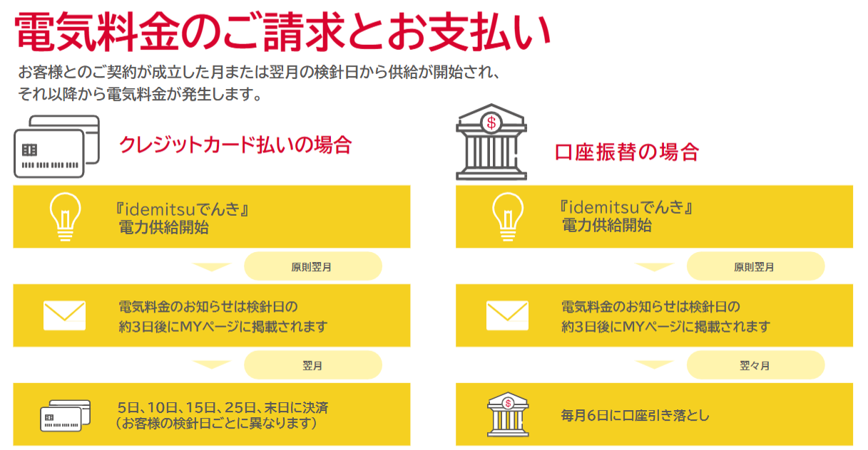 ※電気料金は弊社指定のお支払い方法(クレジットカードまたは口座振替)にて毎月ご請求させていただきます。ただし、決済方法の登録作業中や情報の不備等によりお支払いの確認ができなかった場合は、別途コンビニエンスストア等でお支払いをお願いいたします。なお、コンビニエンスストア払込票1通あたり550円(税込み)の手数料をお客様にご負担いただきます。手数料は、コンビニエンスストア払込票の請求対象月翌月分の電気料金と併せてご請求させていただきます。