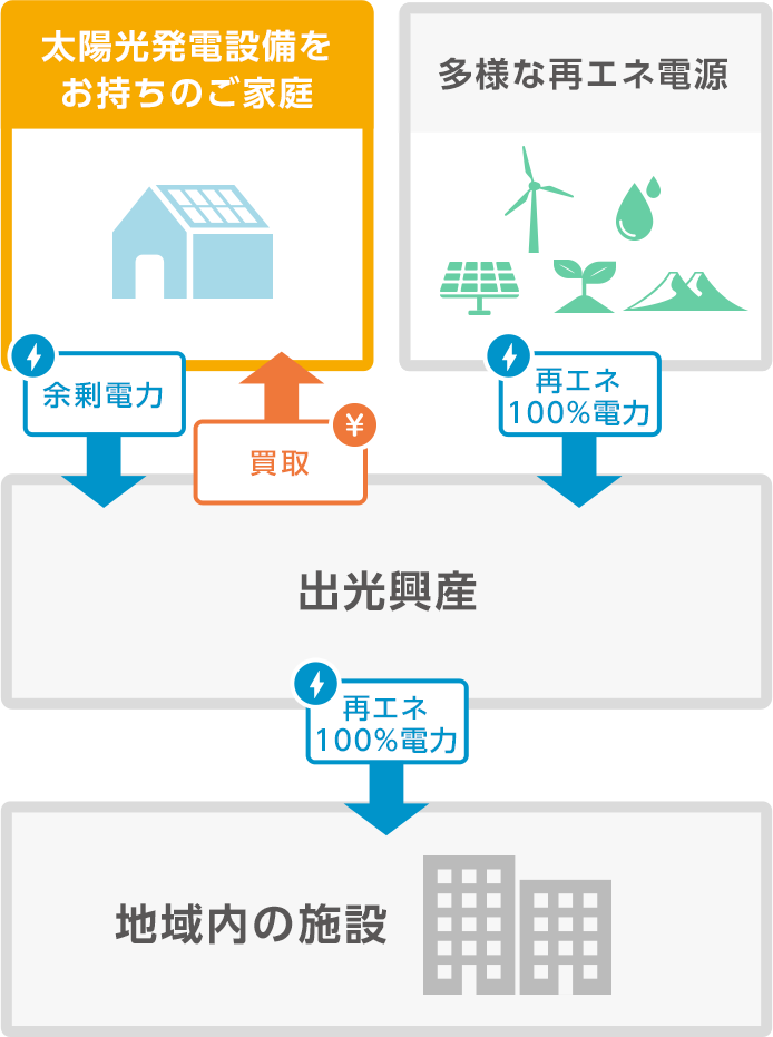 この一環として、卒FITを迎えたご家庭の太陽光余剰電力の買取サービスを出光興産が提供し、地産地消モデル事業を展開しています。