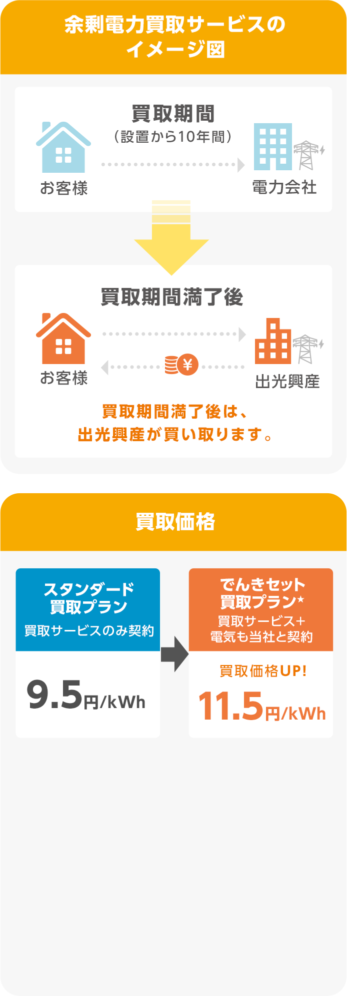 ★:原則として電気供給サービスのご契約と買取サービスのご契約が同一住所、同一名義の場合に適用します。買取契約を先に締結した後に当社電気供給をお申込みいただく場合、でんきセット買取プランの適用について「電気お客様センター」にお申し出ください。