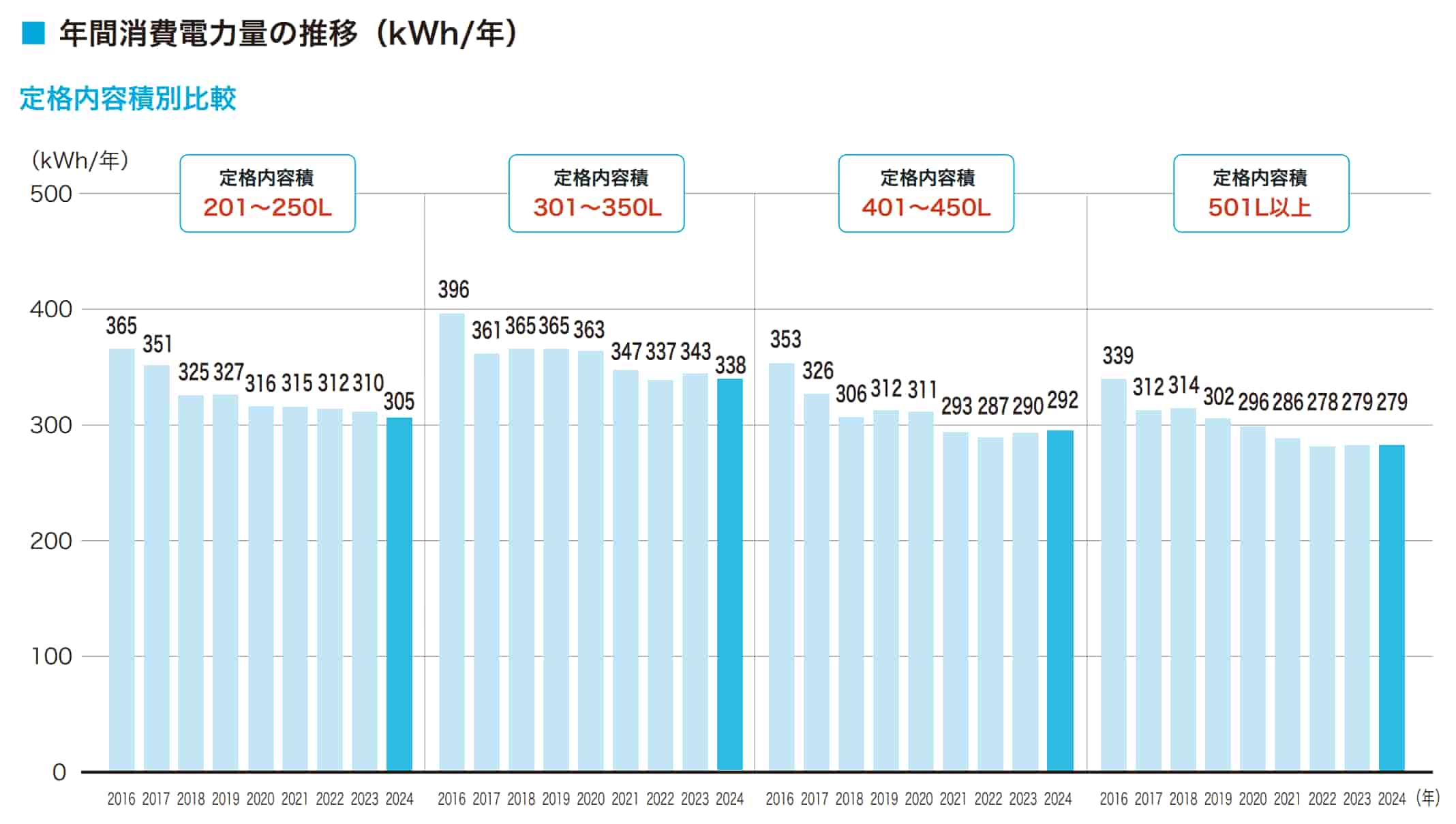 | 401~500L | 270〜286kWh | 8,370〜8,866円 | – | – | |