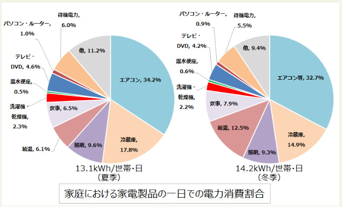 画像出典:家電製品別の電力消費割合を知ろう!|資源エネルギー庁「省エネポータルサイト」