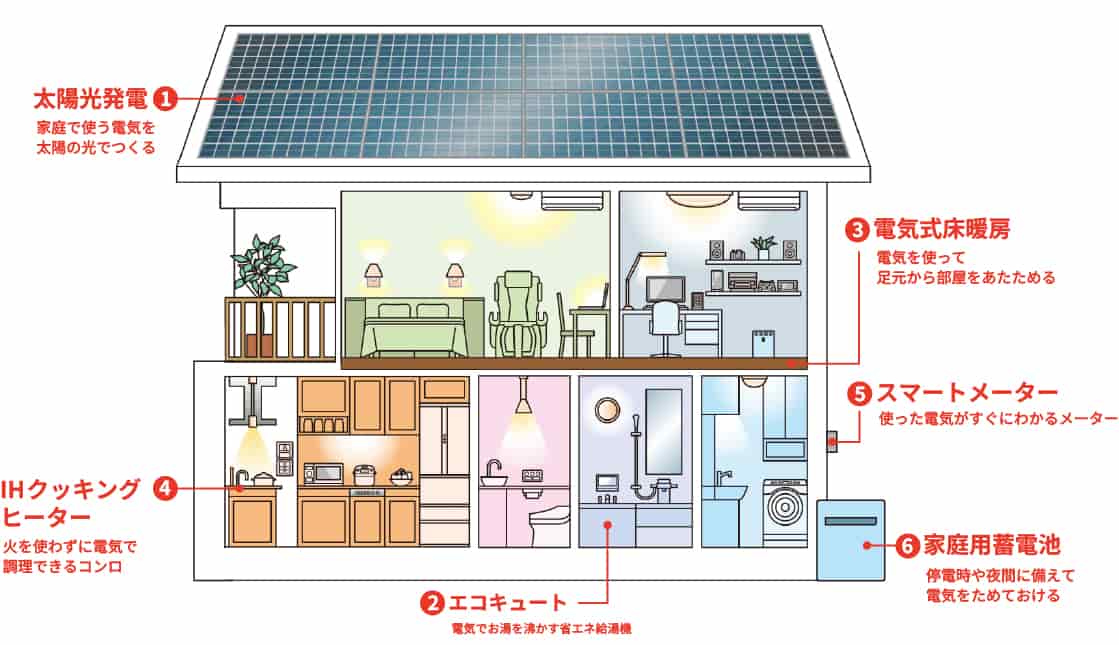オール電化とは、キッチンや給湯、冷暖房など家庭で必要なエネルギーをすべて電気でまかなう仕組みのことです。